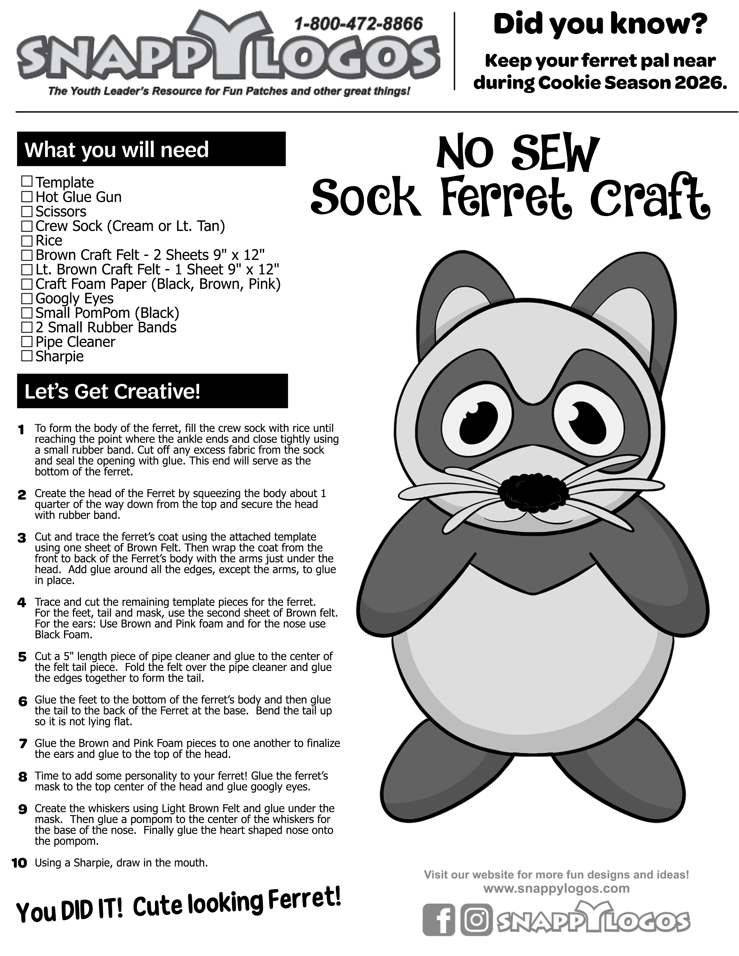 No Sew Sock Ferret: https://www.snappylogos.com/Images/No%20Sew%20Sock%20Ferret.pdf
